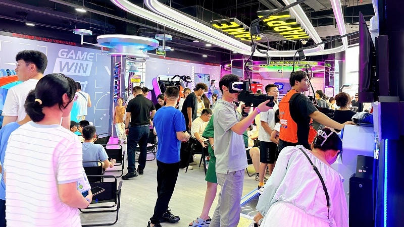 其中,二樓打造的“動感競技場”,可讓消費者體驗保齡球精準(zhǔn)碰撞的樂趣,在“槍王對決”和“實彈射擊”中感受腎上腺素飆升,挑戰(zhàn)“滑索”的速度與“射箭”的專注,暢玩Switch2/PS5主機游戲,或在“炫動單車”“金剛戰(zhàn)士”“巔峰狙擊”中釋放活力,更可在“落日休憩區(qū)”憑欄觀海,動靜皆宜;三樓打造了“科技社交匯”,讓消費者步入VR館即可開啟奇幻冒險,通過“宇宙一號”“傘途”“雙人360”“樂享滑雪”等7大尖端設(shè)備穿梭虛實之境。同時,“聲控派對”“開放式舞臺”點燃社交熱情,桌游、麻將、碰碰車、臺球、飛鏢、模擬網(wǎng)球、“悅動格子”“360°單車”等豐富選擇滿足不同興趣群體,更有私密“轟趴房”和舒適“太空艙”提供專屬聚會與休憩空間。